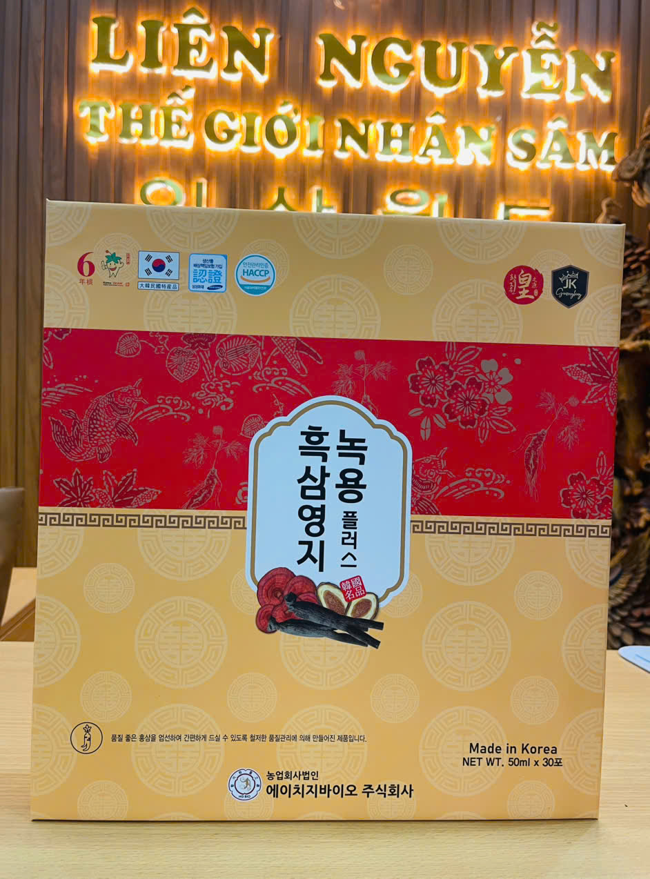 – Sản phẩm kết hợp 3 thảo dược quý: 흑삼 (hắc sâm), 영지 (nấm linh chi) và 녹용 (nhung hươu).